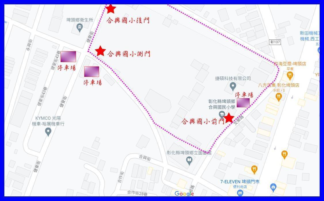 五、檢附合興國小及東興國小車輛行徑及停放示意圖各1份。